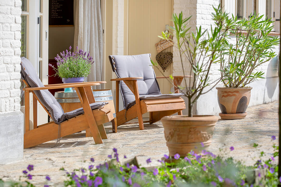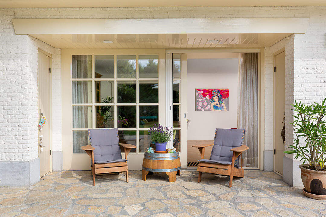 De stenen sluiten perfect aan op de houten vloer welke binnen ligt, en de crème kleuren die gebruikt zijn in het schilderwerk. Het resultaat is daadwerkelijk prachtig.