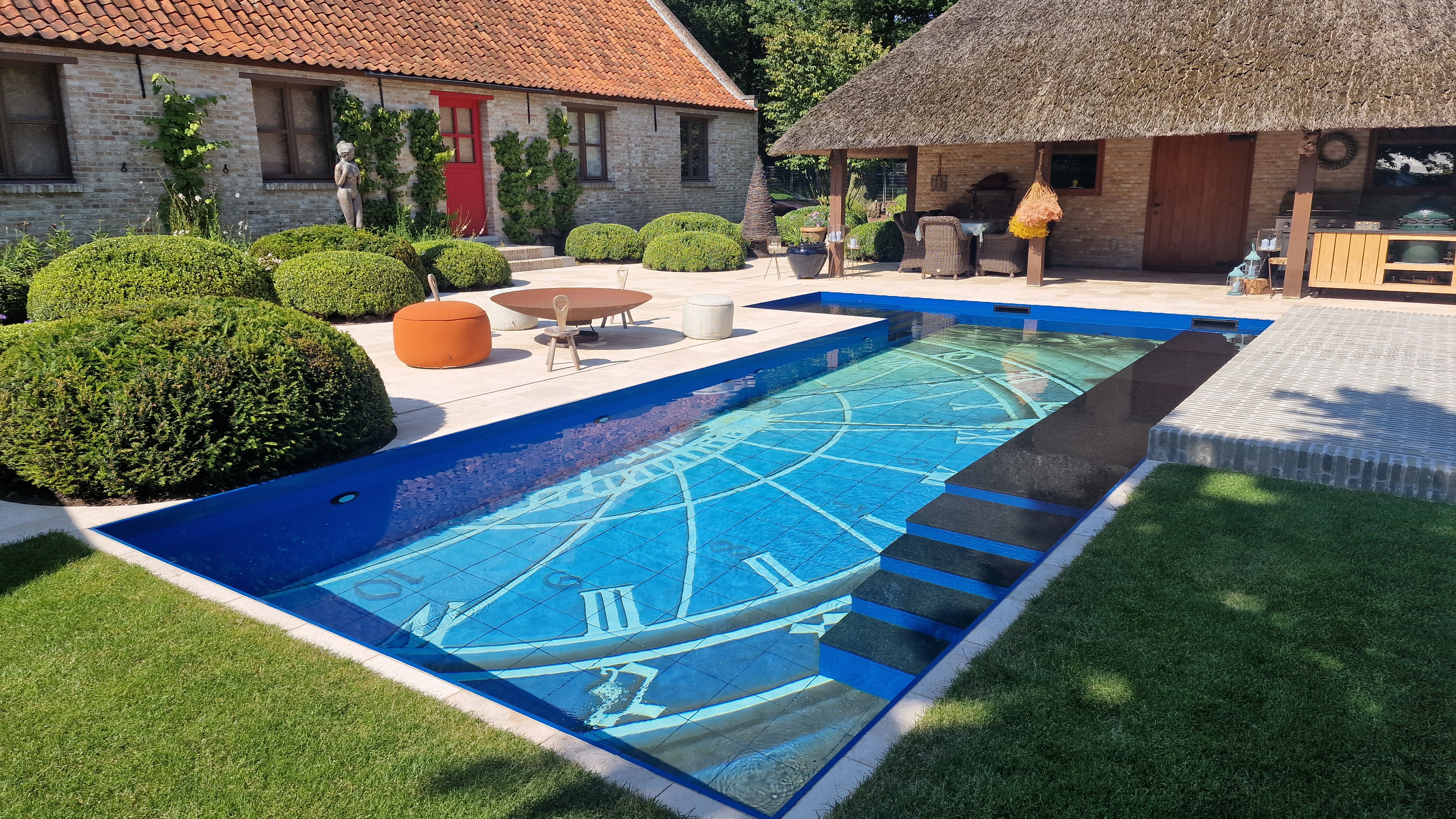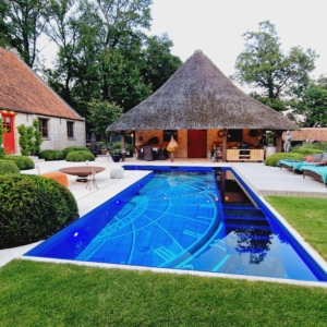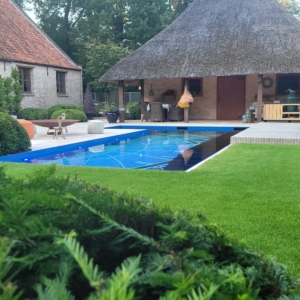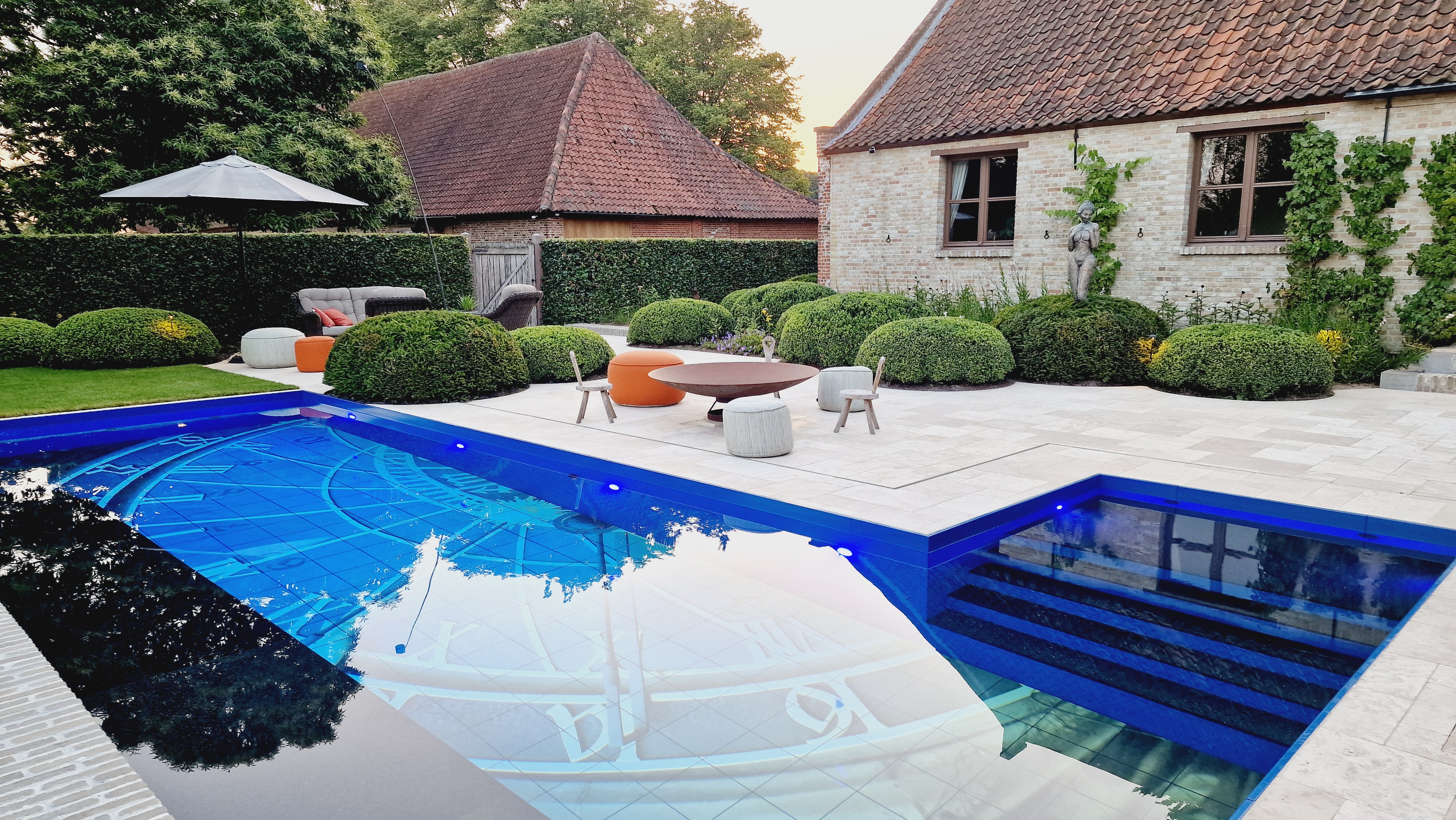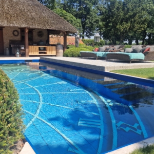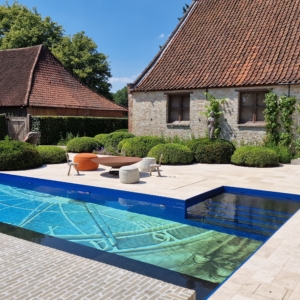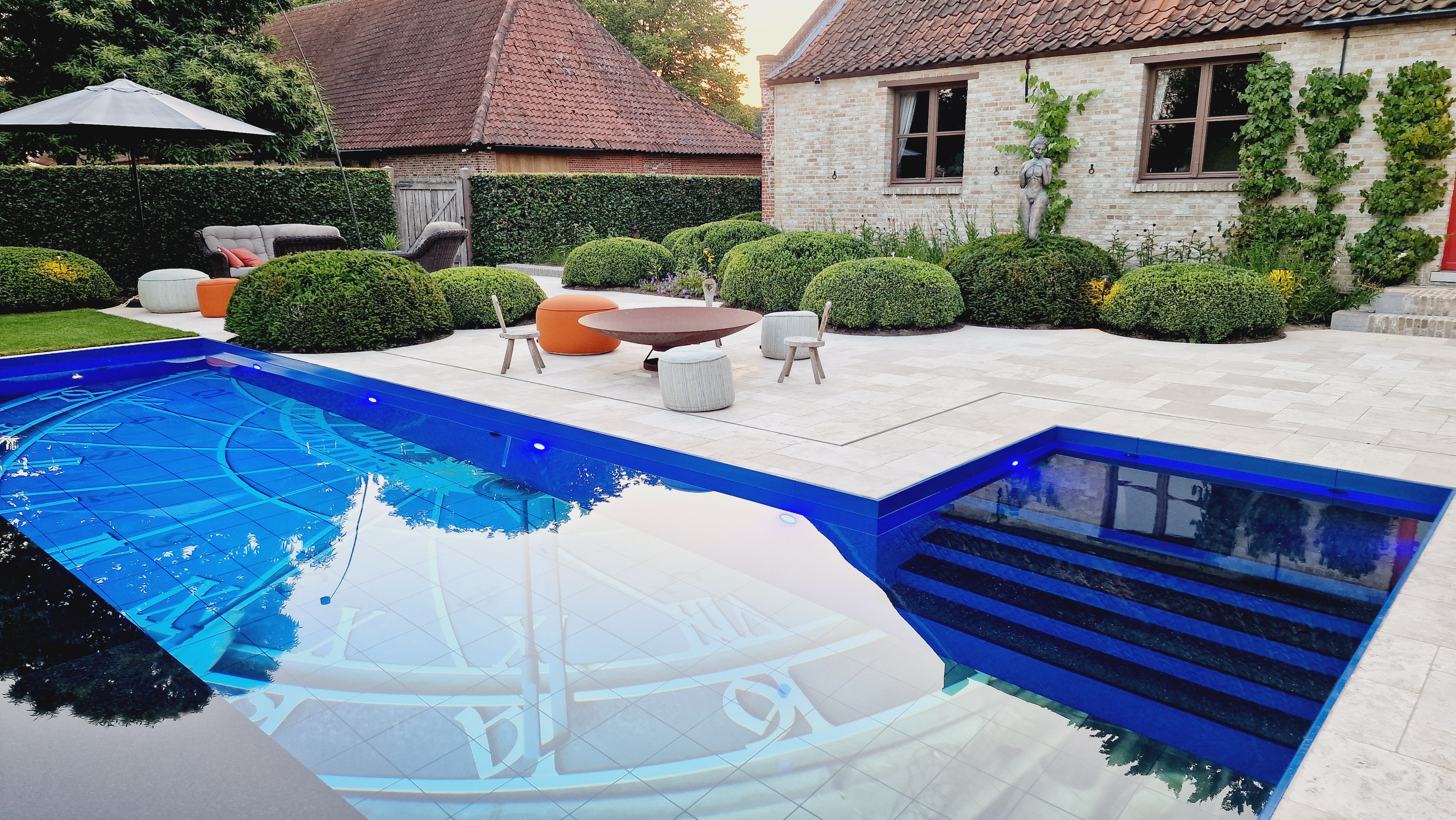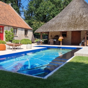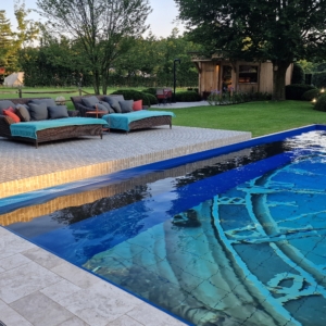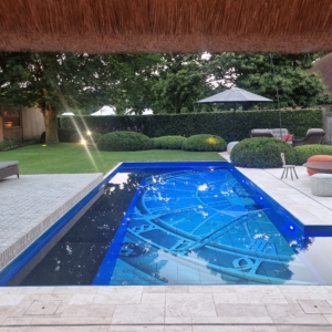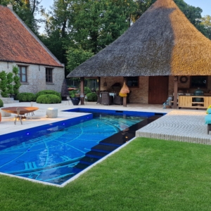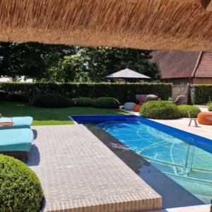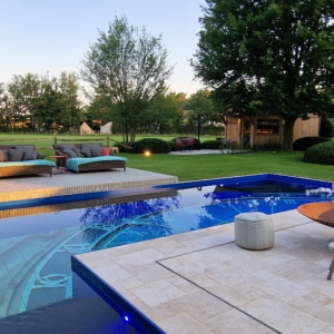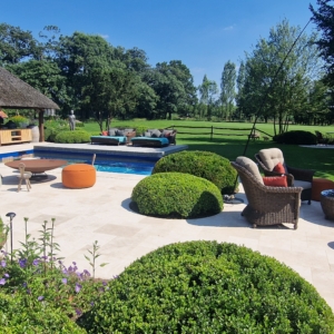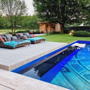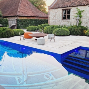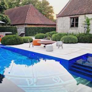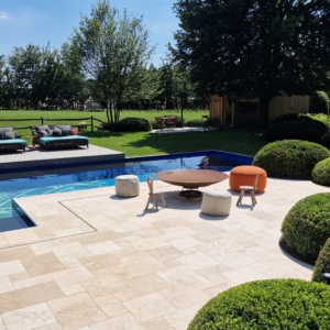 Een groot voordeel van de Travertin Apulia Ivory Beige Anticato is dat er van dit materiaal ook verschillende maatwerk elementen zijn zoals opsluitbanden en zwembadranden. Iets wat ook in dit project goed uitkwam.
