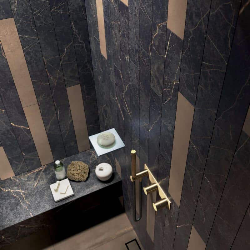 - Diepe Zwart met Warme Bruine Aders: De tegel weerspiegelt de diepe zwarte kleur en de warme bruine aders van Port Laurent marmer, wat een visuele pracht toevoegt aan uw ruimte.