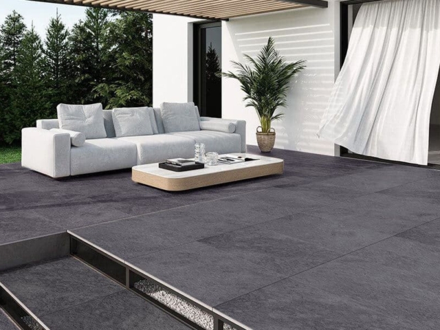 Een perfecte terrastegel voor wie echte leisteen prachtig vindt, maar de zekerheid wil hebben van weinig tot geen onderhoud.
