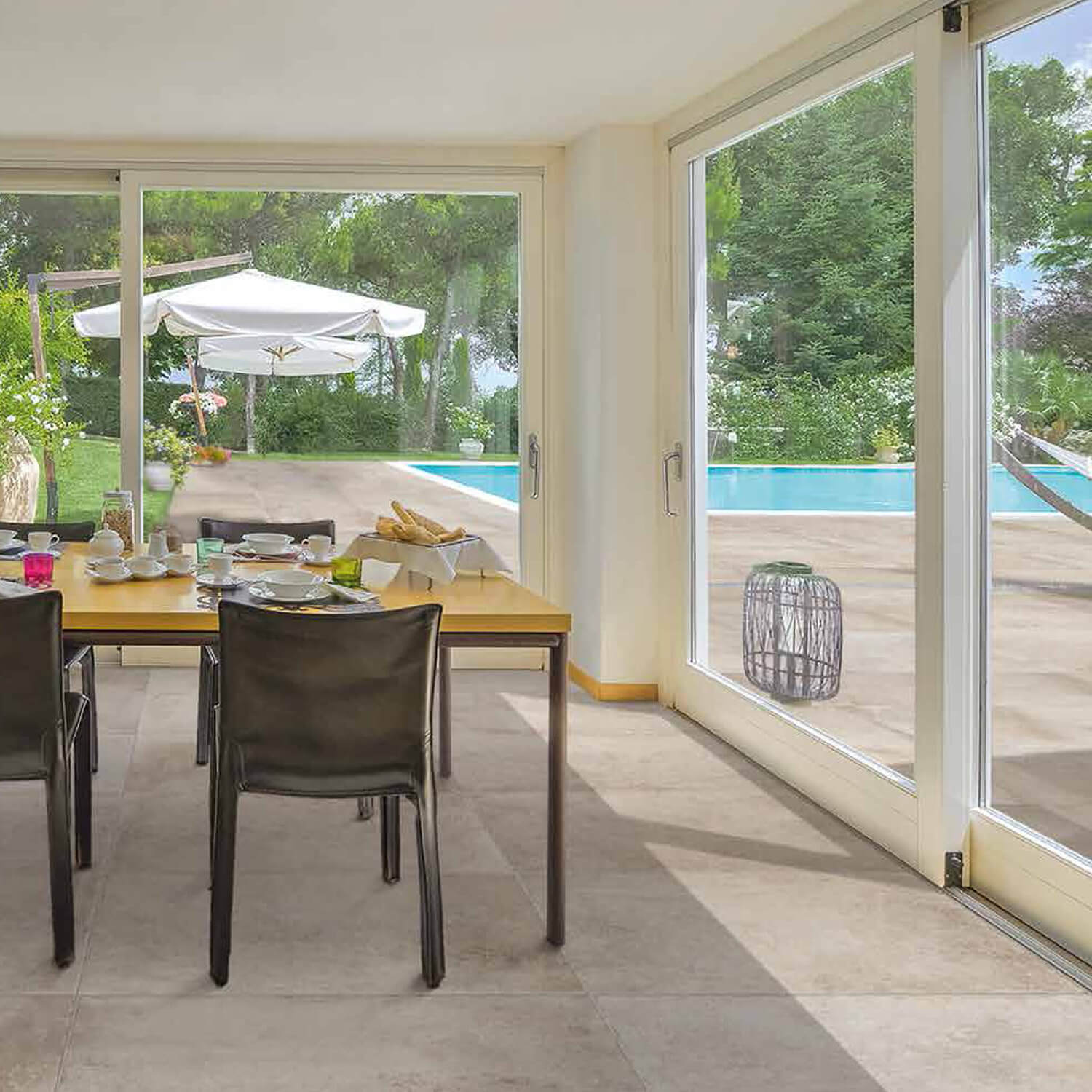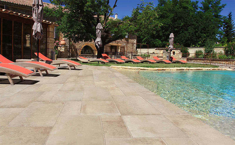 De uitstraling van een ‘Bourgondische dallen terras’ maar dan volledig onderhoudsvrij, kleurvast en weersbestendig. Een unieke beleving afgeleid van de kalkstenen welke al honderden jaren gewonnen worden in de Franse Steengroeves. Kleuren, verouderingen en dieptes welke vrijwel één op één terugkomen in de originele materialen.