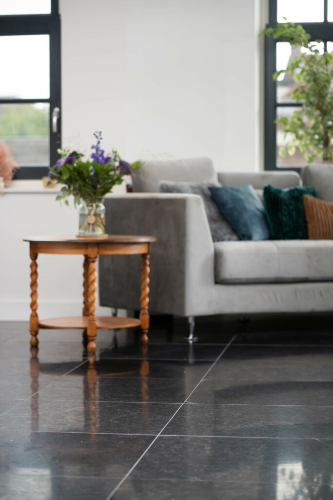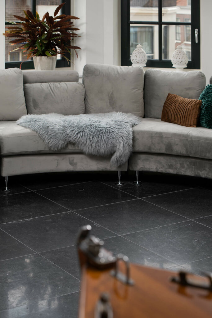 Donker Belgisch Hardsteen Vloertegels verwerkt in Maassluis