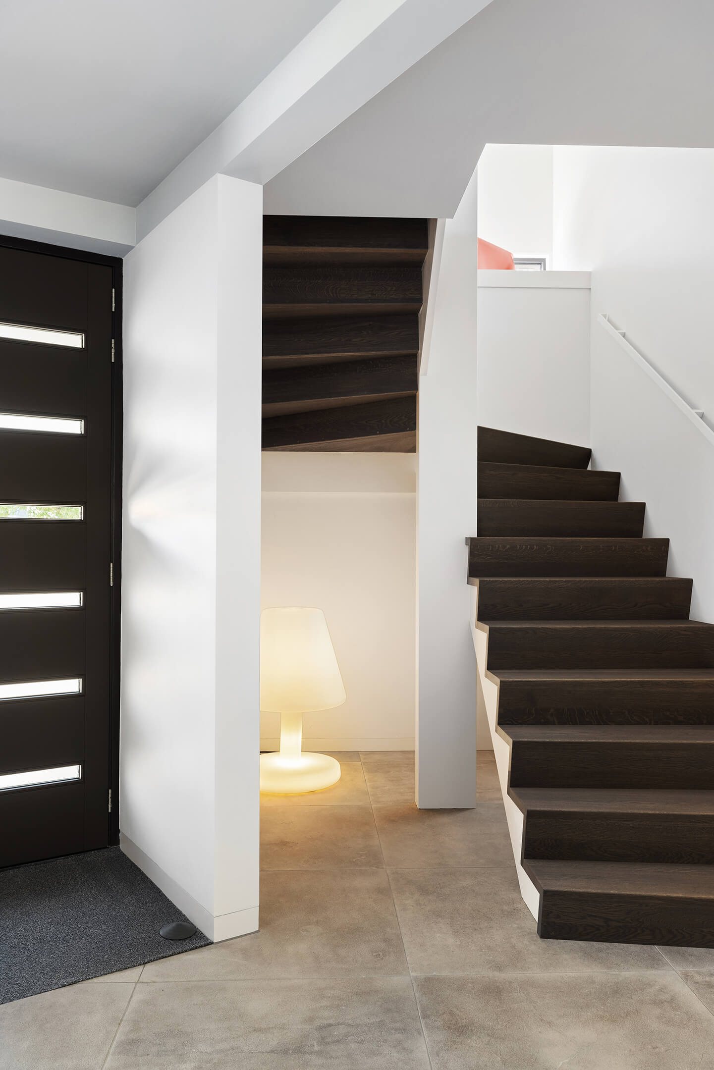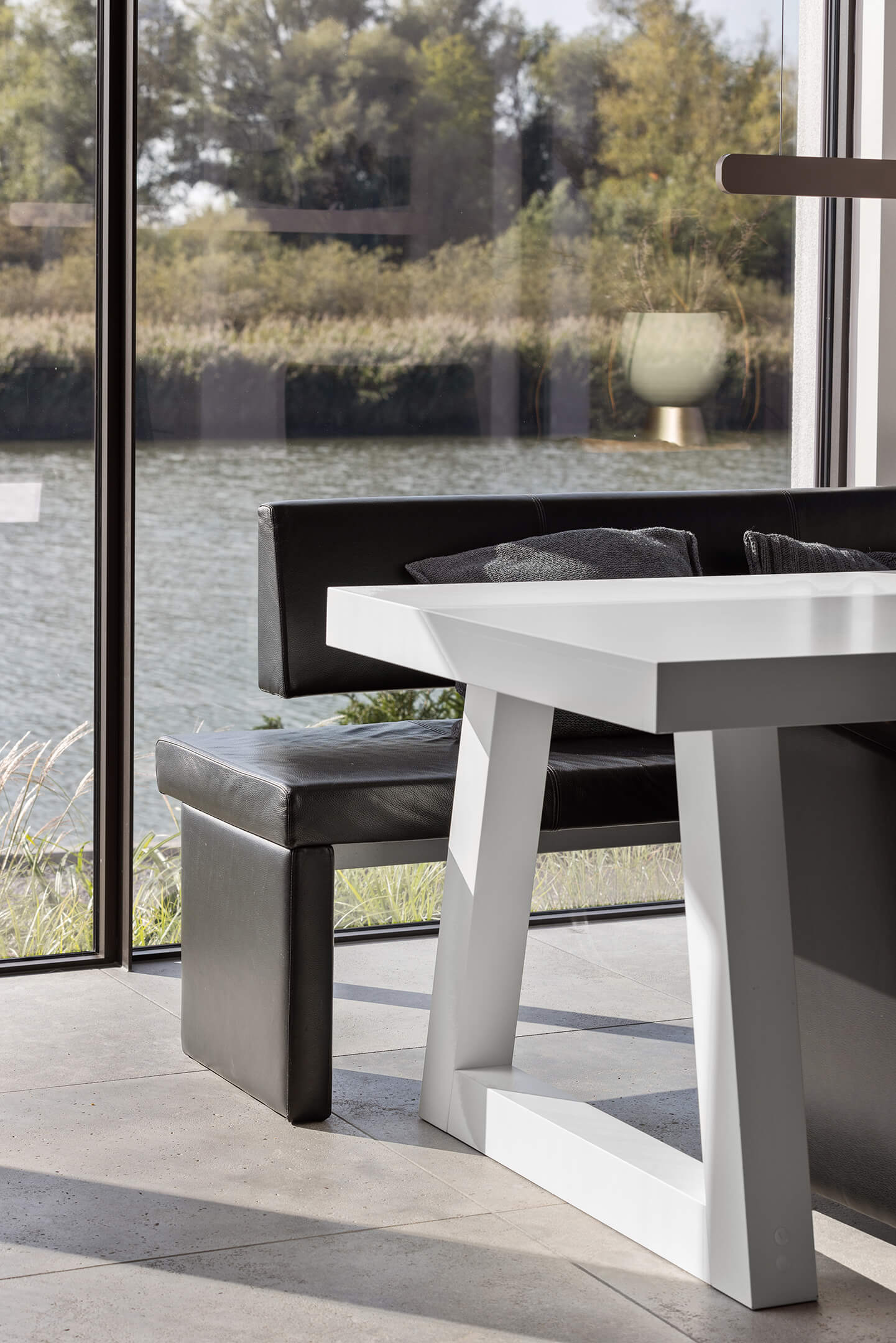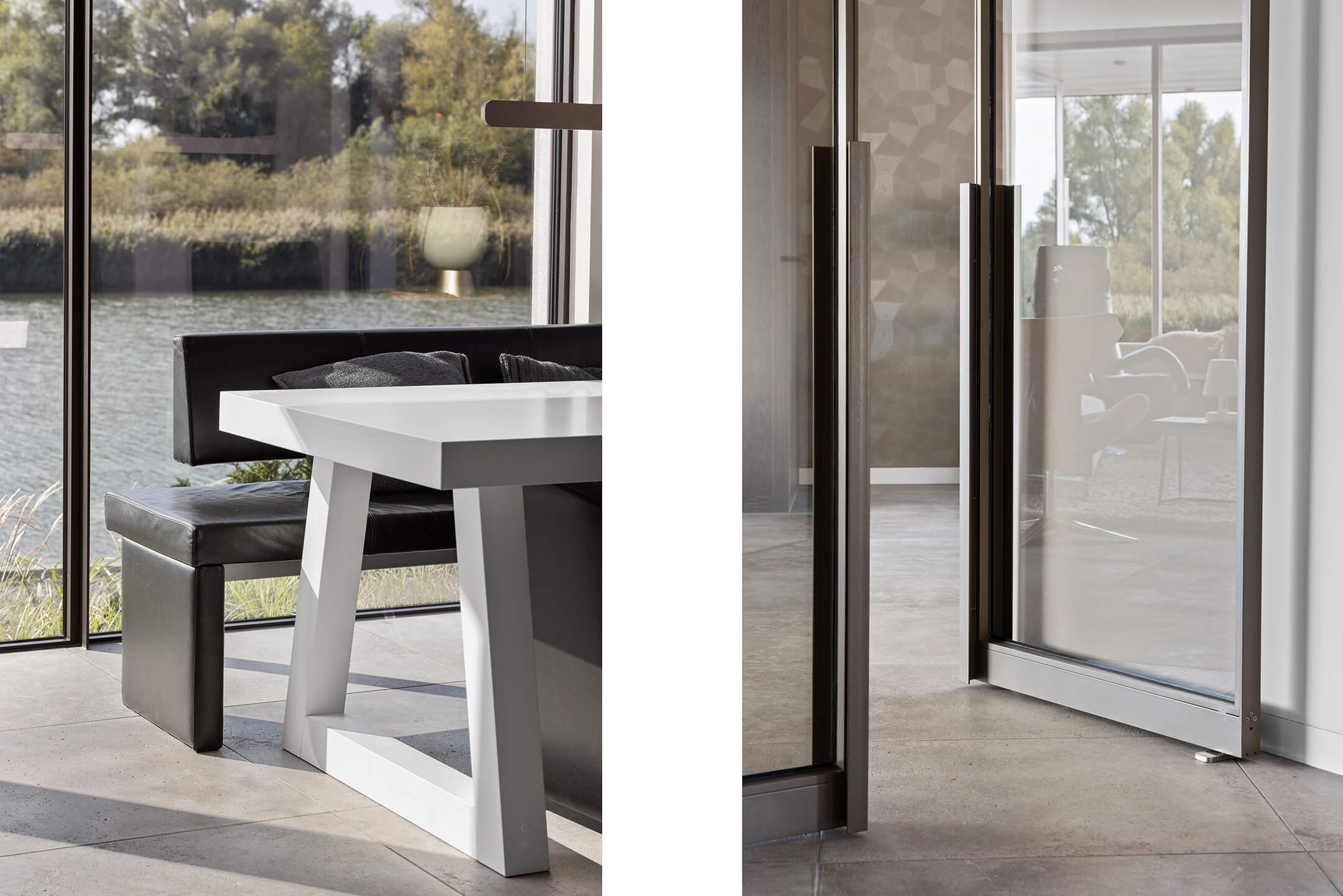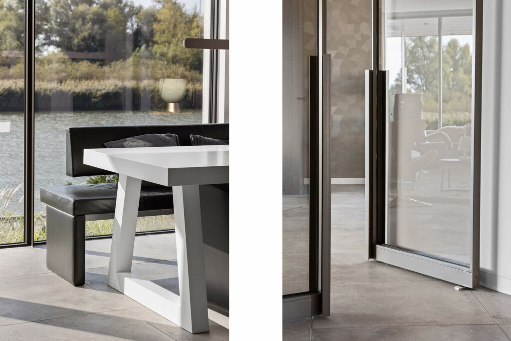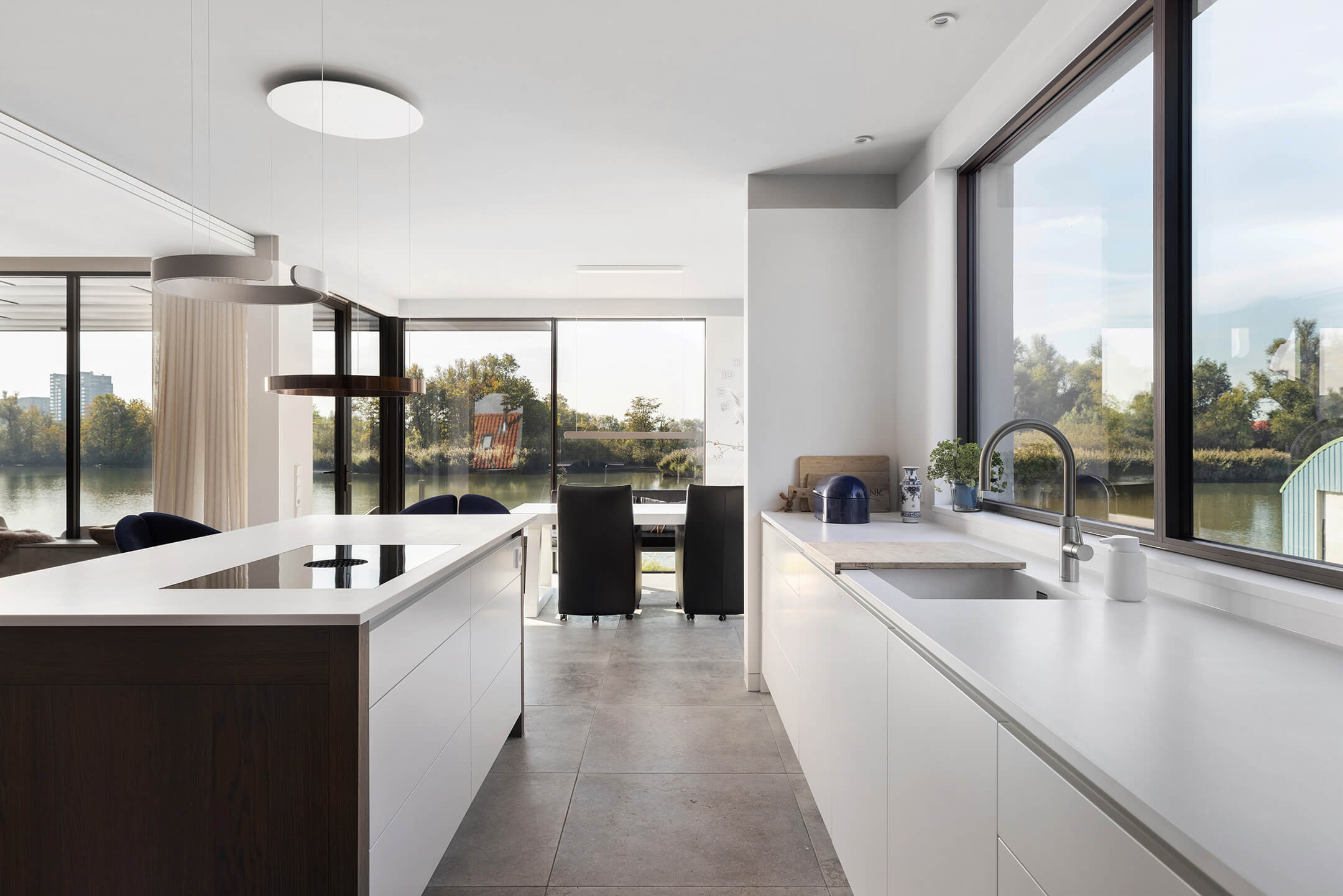Wanneer een aannemer zijn eigen huis gaat bouwen, kun je ervan uitgaan dat de lat hoog ligt. Zo ook bij deze aannemer. Tijdens het zoeken naar de juiste materialen voor deze moderne villa aan het water, is er ruim de tijd genomen om te zoeken naar een materiaal met niet alleen de juiste kleurstellingen, maar ook de juiste afwerking.