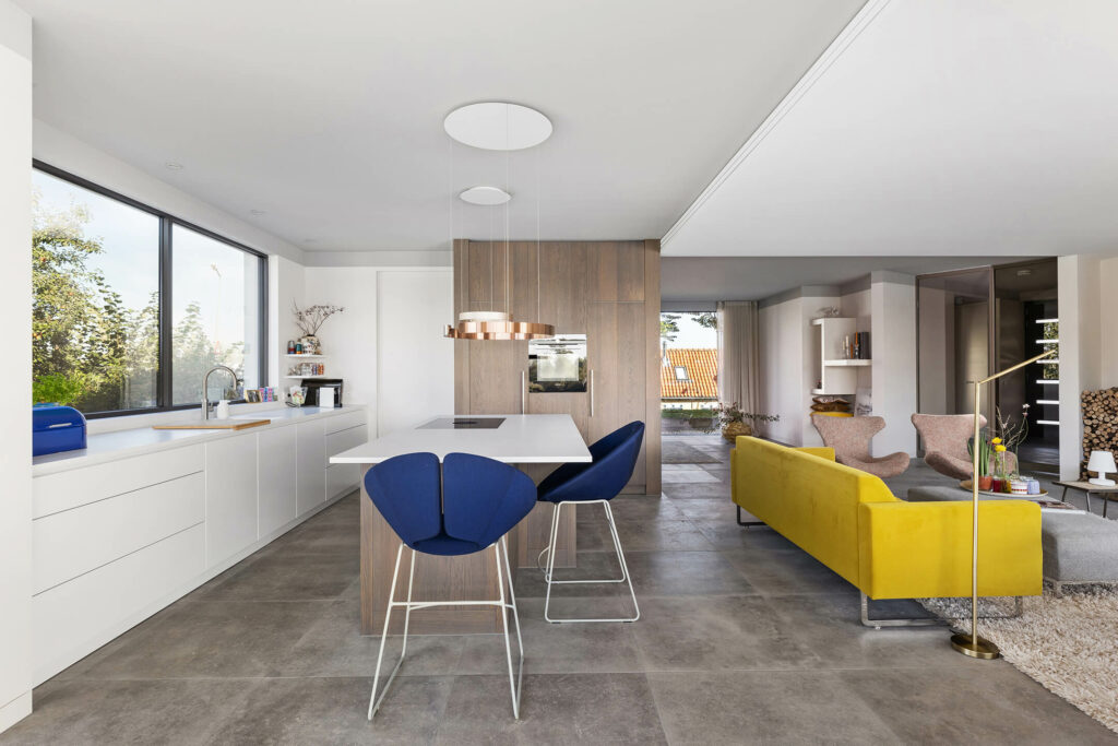 Ook zijn er mooie details zichtbaar in deze woning. Zo zijn plaatselijk ook de wanden en vensterbanken bekleed met hetzelfde materialen als de vloeren.