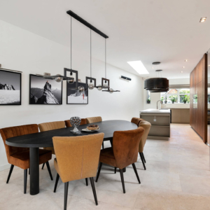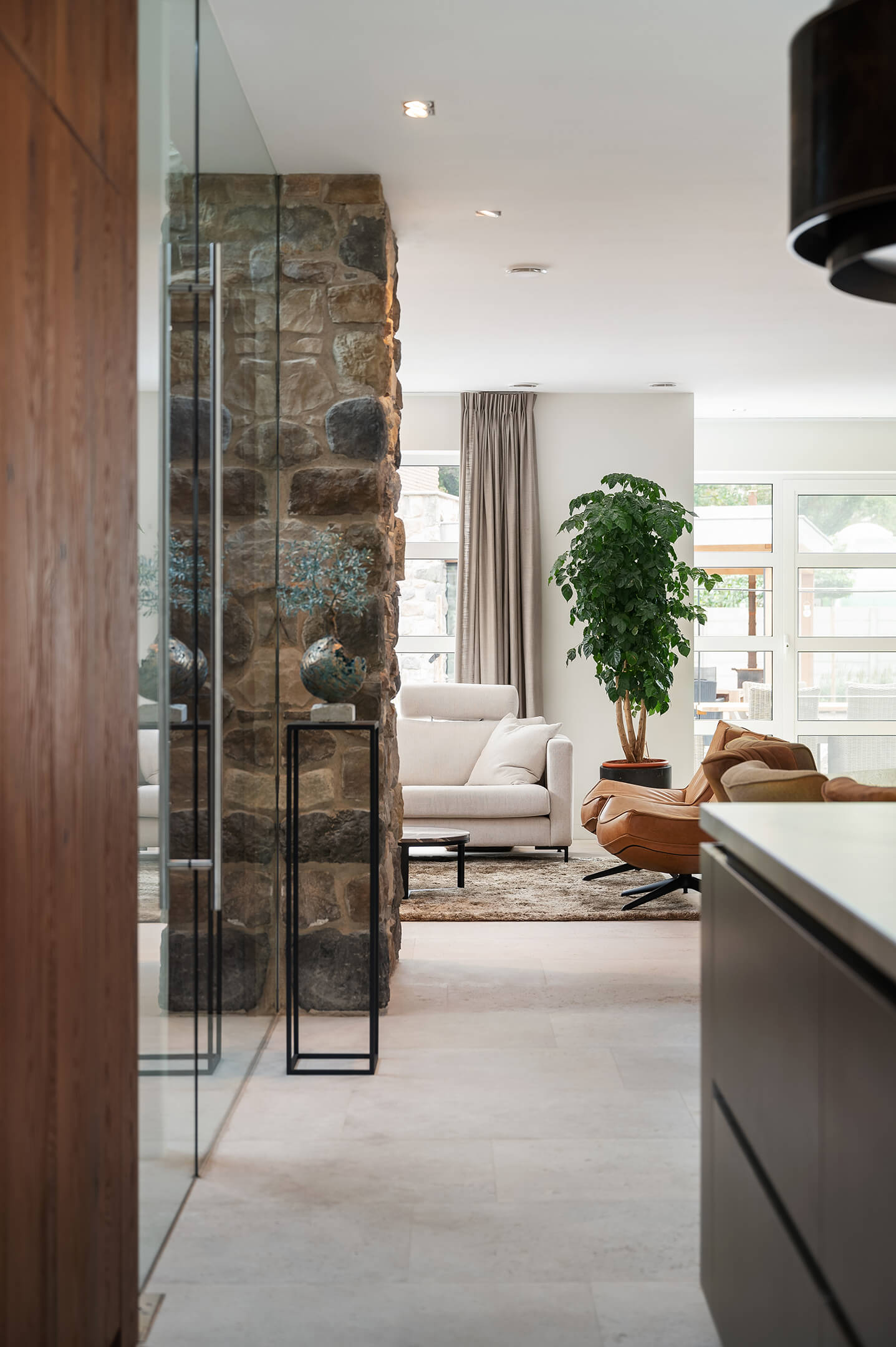 Toen deze aannemer de showroom binnenkwam met de bouwtekening van zijn eigen droomvilla werd ons direct duidelijk dat we hier te maken hadden met een vakman en detaillist. Het was dan ook even zoeken naar het perfecte materiaal en de juiste afwerking. De wens was om de vloeren en het maatwerk uit te voeren in één materiaal en afwerking. Aangezien één van de ruimtes in dit huis een binnenzwembad heeft, was dat niet direct makkelijk.