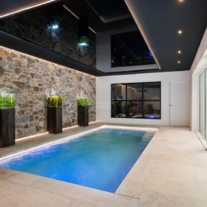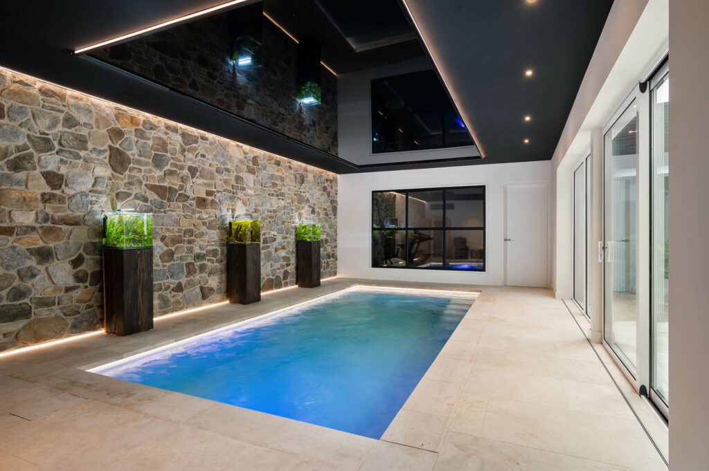 Travertin Noce Arenado in moderne villa met binnenzwembad