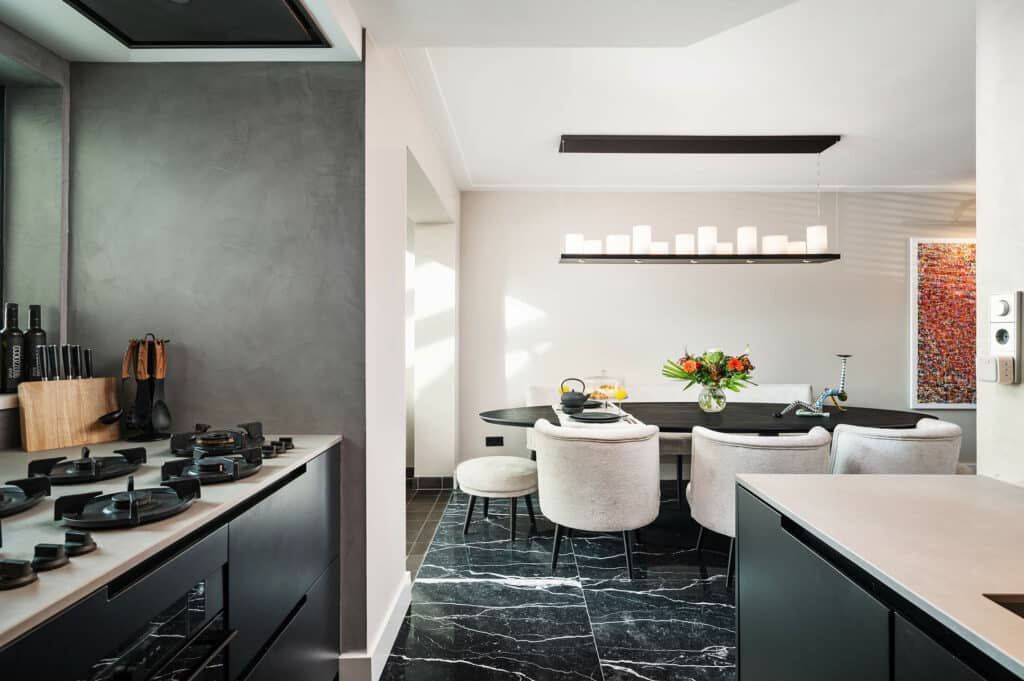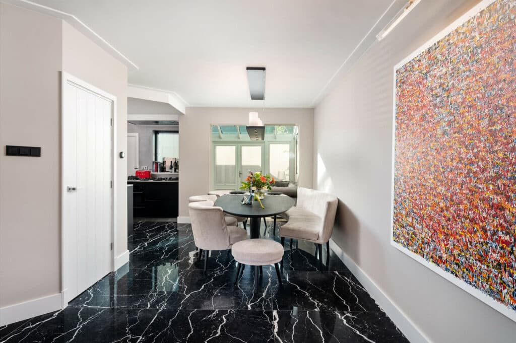 Een bijzonder project met Nero Maquina marmer, de tegels hebben het formaat van maar liefst 100×100 cm. Een marmersoort welke, zeker in dit geval, perfect matched bij de interieurstijl van deze klant.