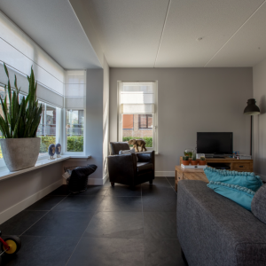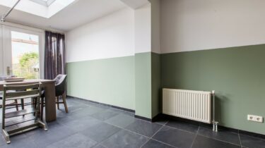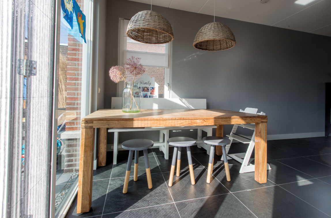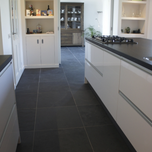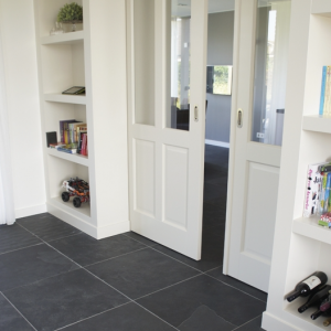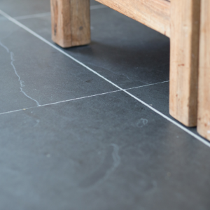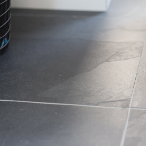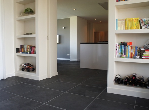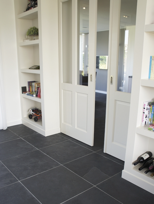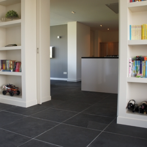 De groen/grijze kleur is eenvoudig te combineren met allerlei verschillende inrichtingen- en interieur stijlen, terwijl het breukruwe oppervlak de vloer toch een stoer karakter geeft.