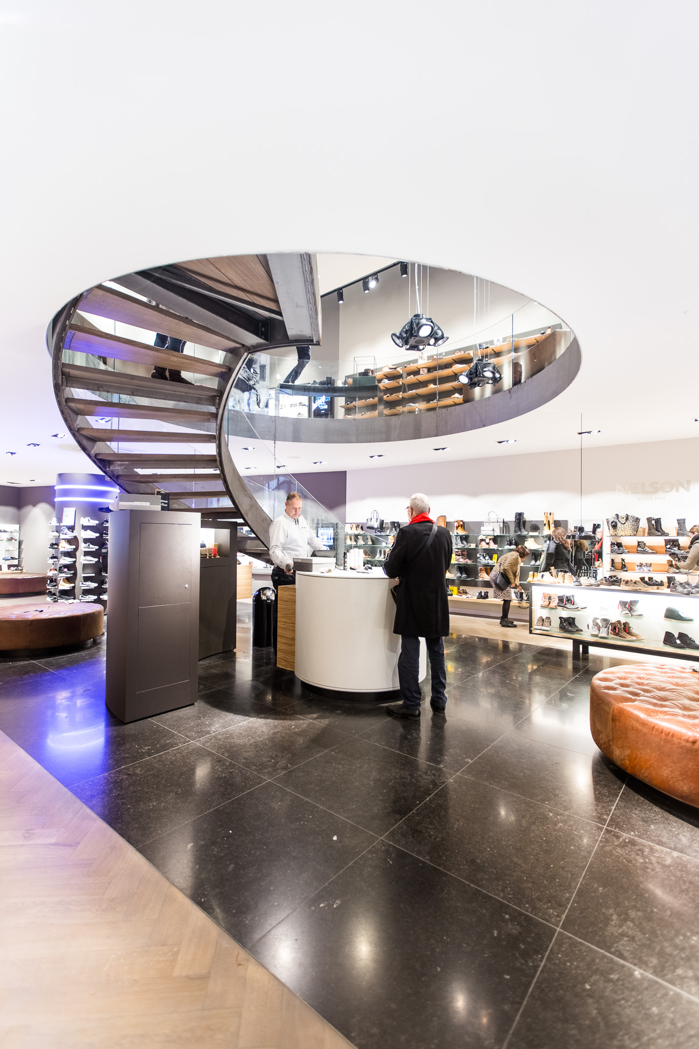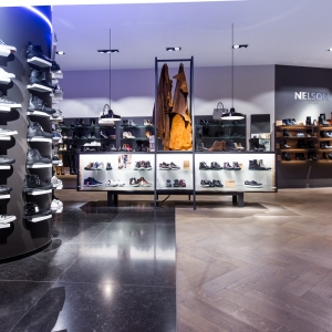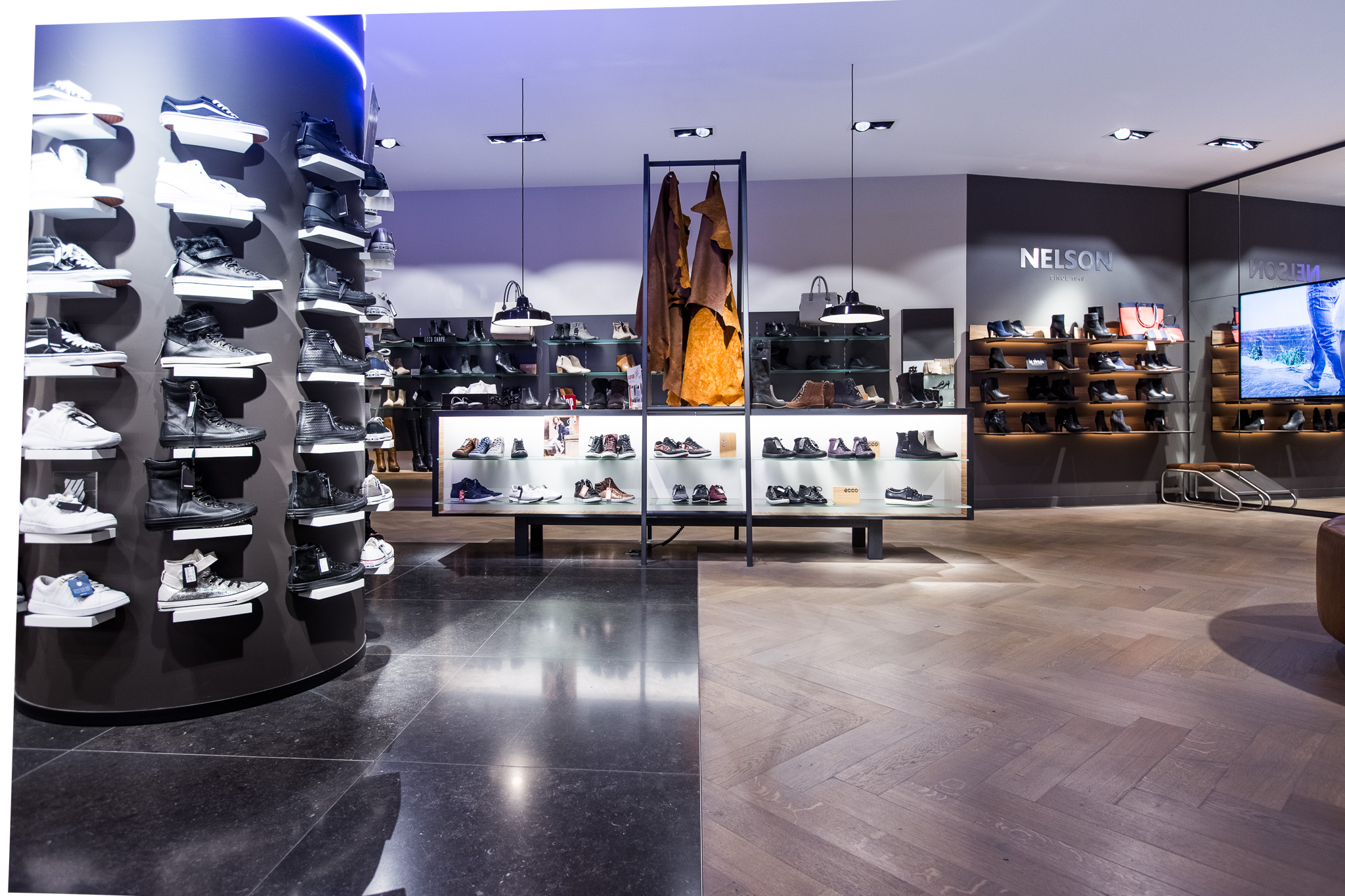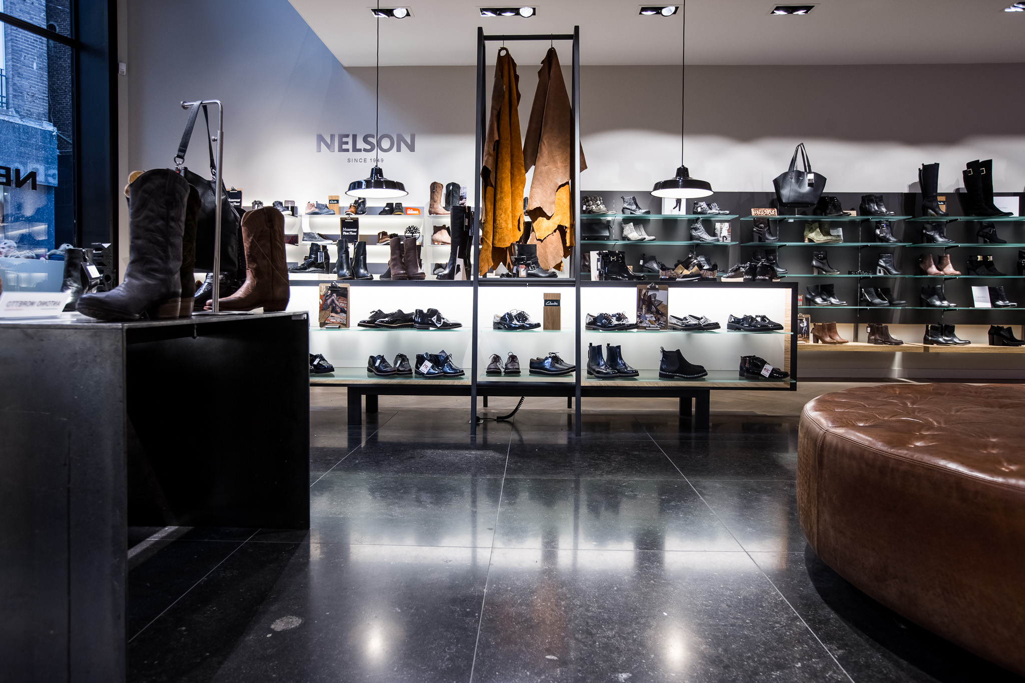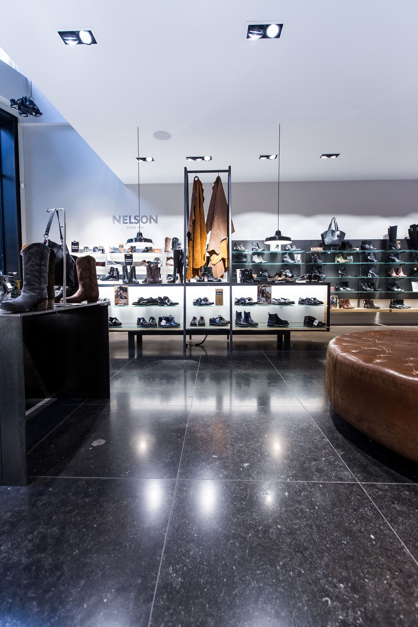 Voor het pand van Nelson schoenen te Amsterdam is gekozen voor een Donker Gezoete Belgisch Hardsteen.