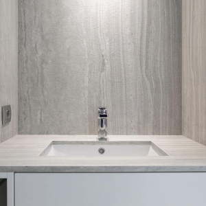 Hoewel de Neolith Strata Argentum Riverwashed doorgaans in een moderne inrichting wordt verwerkt kunt u uw stijl combineren met het Neolith, daar Neolith multifunctioneel is en zelfs gebruikt kan worden als aanrechtblad, schouwbekleding, of wandbekleding. Daarnaast is het onderhoudsloze karakter van Neolith zeer gewenst. Het maken van dit maatwerk behoort tot onze specialiteiten. Vraag ons naar de opties.