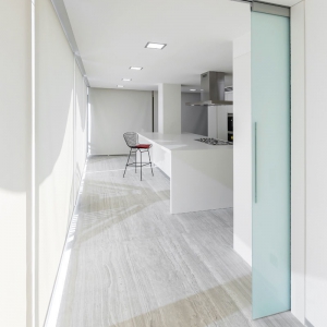 De verschillende tinten grijs zijn door de aderstructuur goed zichtbaar, waardoor een vrij rustige maar stijlvol beeld ontstaat. De Neolith tegels staan bekend om hun duurzaamheid en kwaliteit en de Strata Argentum Riverwashed is hier geen uitzondering op. De verschillende structuren sluiten mooi op elkaar aan.