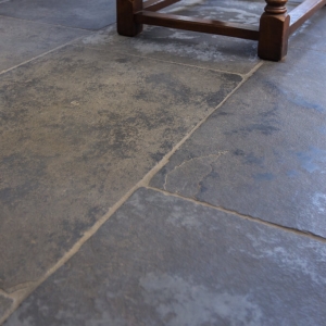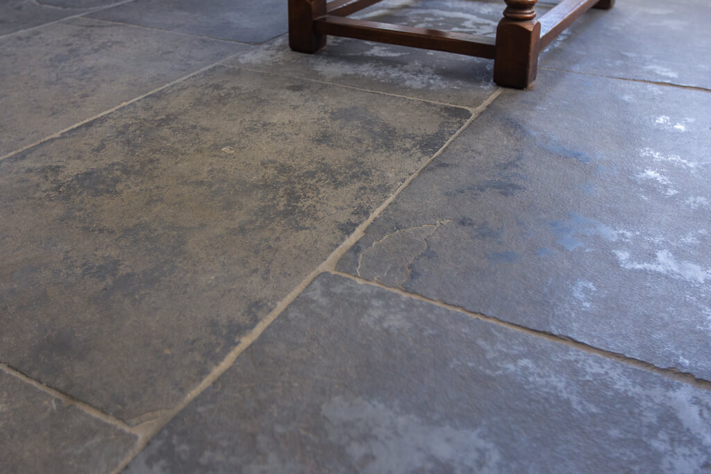 Het verouderen van deze vloer gebeurt handmatig en tegel voor tegel. Eerst worden de zijdes grof verouderd en vervolgens wordt het oppervlak van de steen plaatselijk grof geschuurd. Dit zorgt voor een doorleefde toplaag die al minstens honderd jaar oud lijkt.