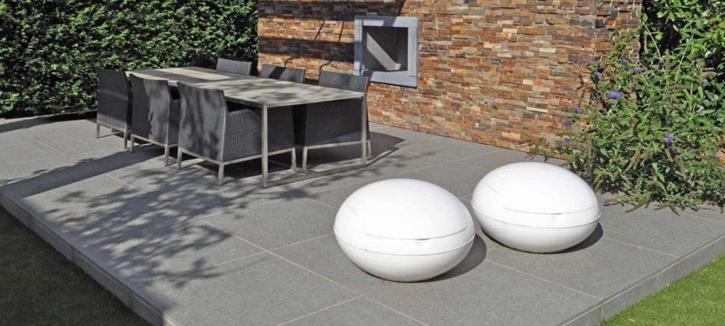 Een prachtige Belgisch Hardsteen Look terrastegel met een lichte kleur.