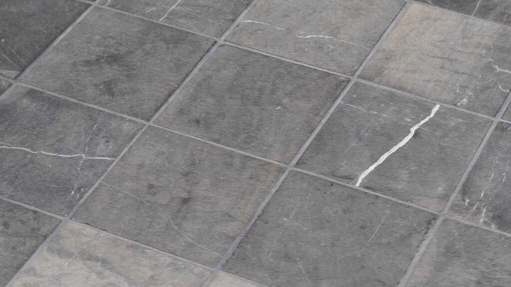 De Parquet grey tumbled marmer mozaïek dient verwerkt te worden met