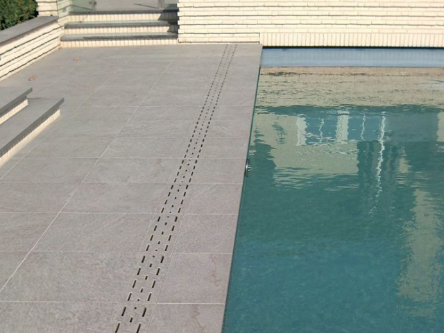 De Percorsi Pietra di Combe heeft een zeer hoge anti-slip waarde en is hierdoor zeer goed te gebruiken rond zwembaden.