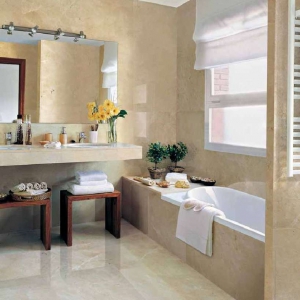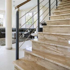 De Perlato Olimpo B is een tijdloze marmer die al jaren veel verkocht wordt. Door zijn beige / bruine tinten en zijn wisselende banen verband brengt deze vloer een gezellige sfeer in huis.