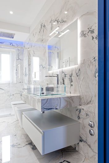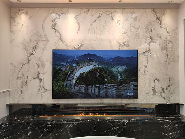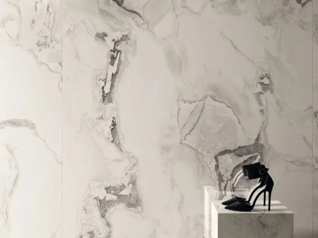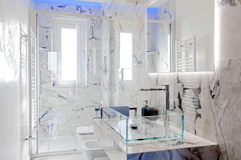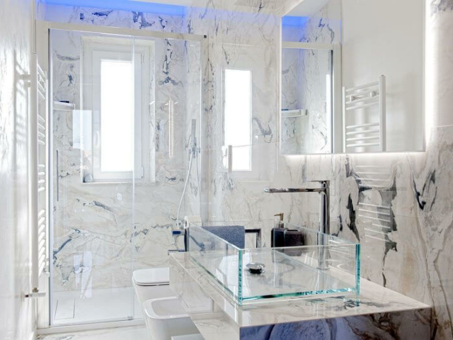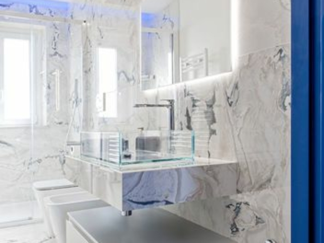 Een prachtig geaderde witte marmer look zonder onderhoud.