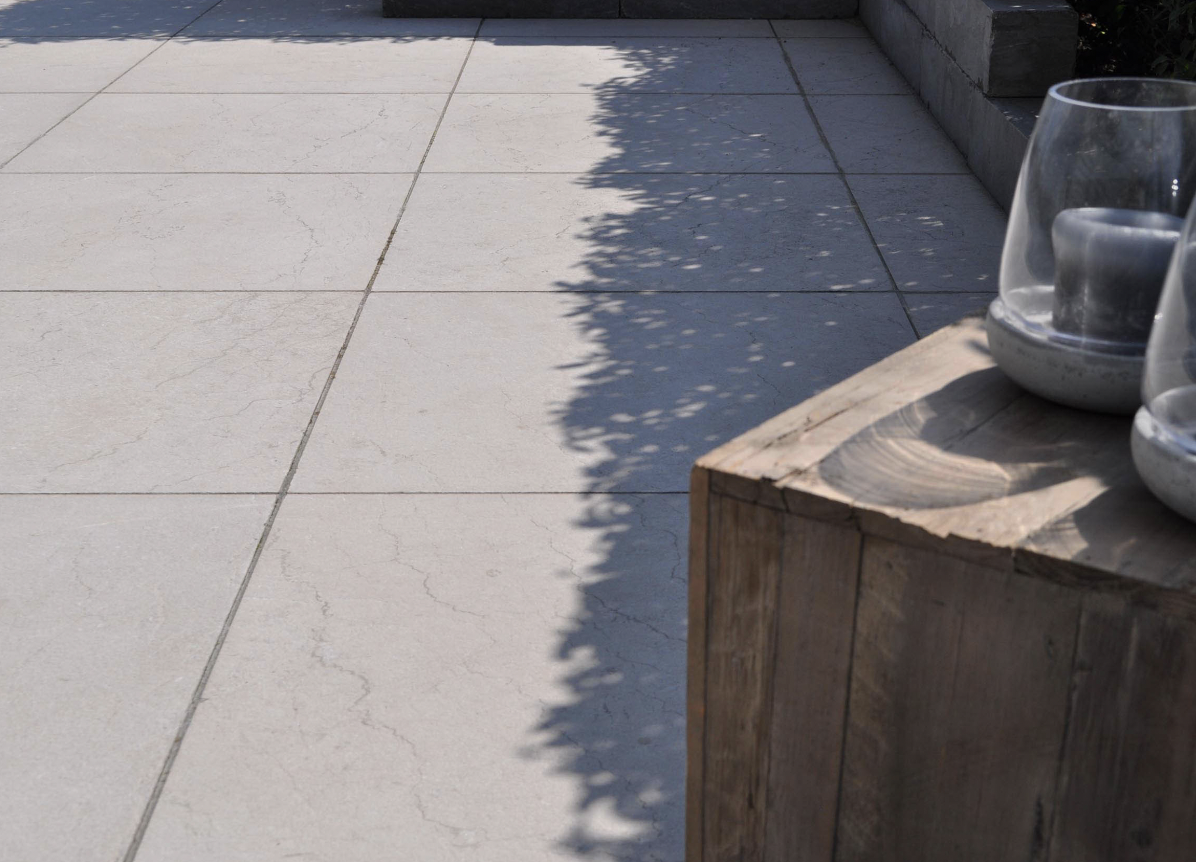 De Royal Beige Gestraald is een mooie lichte kalksteen terrastegel met een heerlijke zomerse uitstraling.