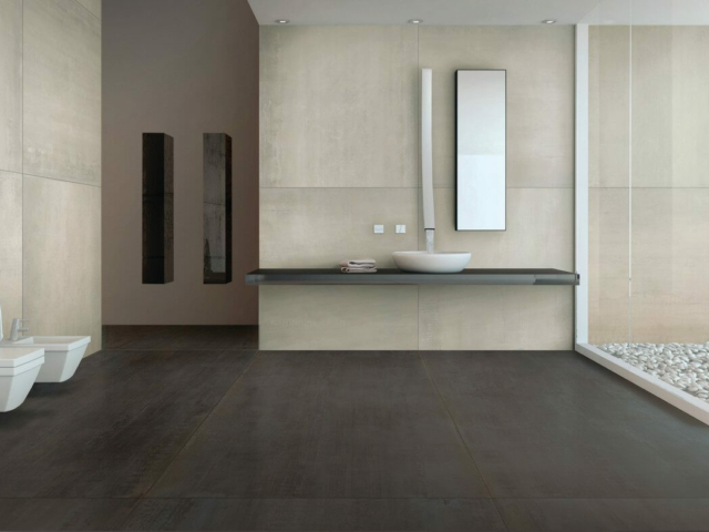 Één van de nieuwste trends op dit moment is een industriële, tijdloze interieur stijl. U hoeft Pinterest of diverse moderne woonbladen maar te openen en na enkele keren bladeren komt deze stijl je al tegemoet. Stalen elementen waren al langere tijd een mooie toevoeging aan de modernere inrichtingen, denk hierbij aan de gepoedercoate taatsdeuren. Aangezien wij graag mee gaan met de diverse wensen van een klant, kunnen we dit tegenwoordig ook terug laten komen in de vorm van vloer- en wandtegels. De Rusty Steel is een antracieten tegel met wat subtiele roestvorming hierin verwerkt. De overheersende antraciettint zorgt ervoor dat het