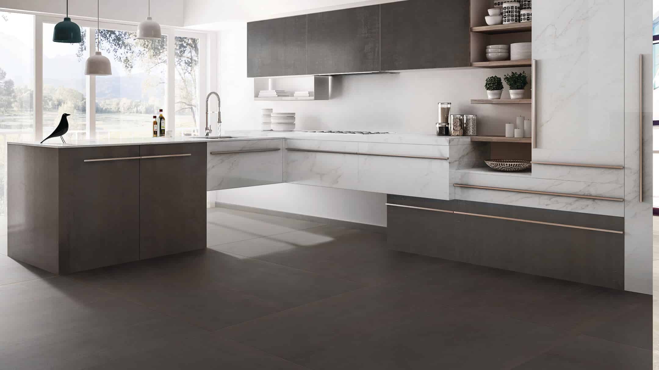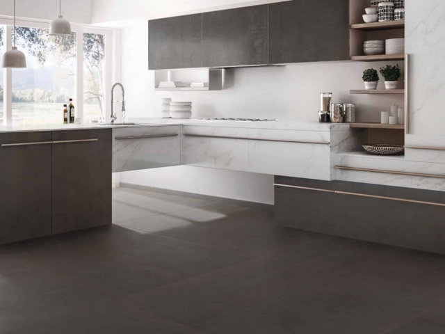 gemakkelijk te combineren is met vrijwel iedere kleur, maar ook goed passen in combinatie met bijvoorbeeld (mango)houtsoorten en bovengenoemde matzwart gepoedercoate staal elementen als deuren op tafelpoten. Ten opzichte van echte stalen platen is de Rusty Steel volledig onderhoudsvrij en krasbestending. Doordat deze porseleinen tegel tussen de 1200 ℃ – 1400 ℃ gebakken wordt, is het een keihard materiaal en ongevoelig voor vochtopname.