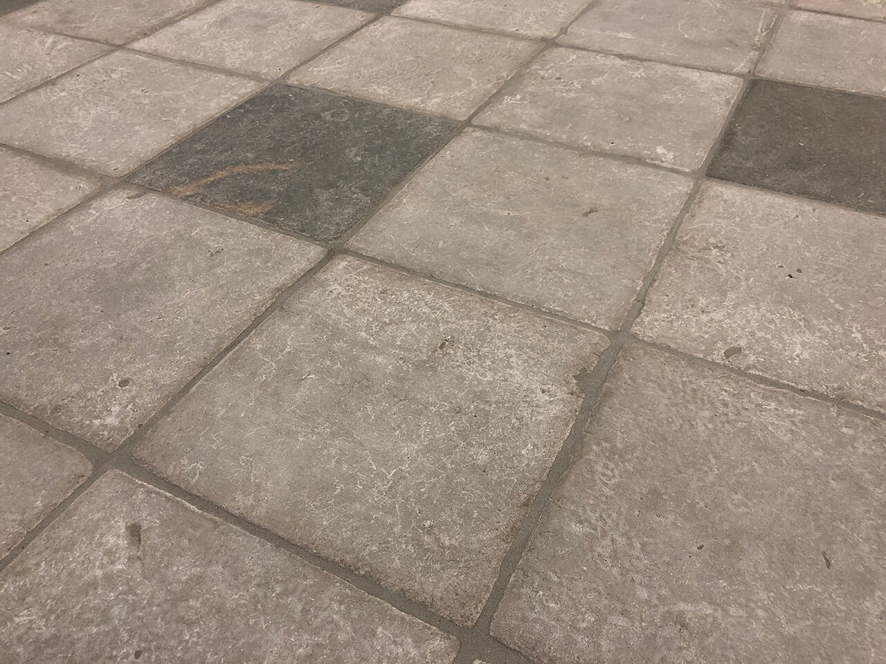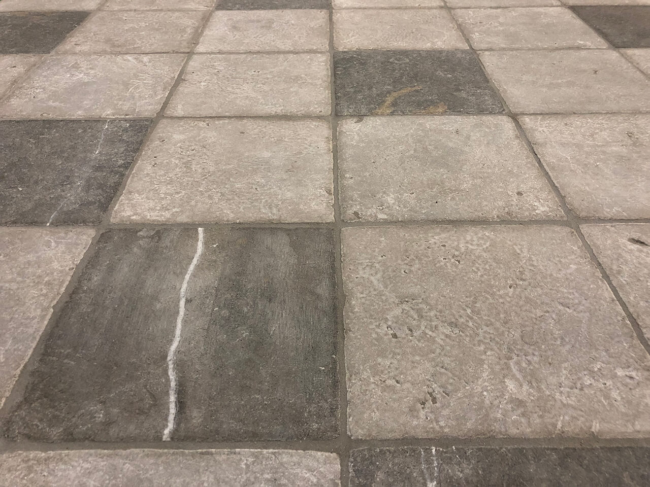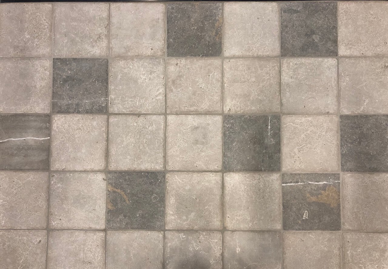 Alles aan de The Old Grey ademt authenticiteit. Het formaat, de grijstinten, de afwerking … alles. In The Old Grey worden 2 kleuren grijs geselecteerd. In de basis is er gekozen voor een lichte grijze kalksteen. Maar om nuances in de vloer aan te brengen is er een donkerdere grijze kalksteen doorheen gemixt. Dit zorgt voor een fraai en speels karakter.