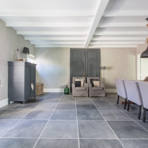 Door de Vietnamese hardsteen te schuren en handmatig rustiek te verouderen krijgt deze vloer een heerlijk doorleefd karakter.
