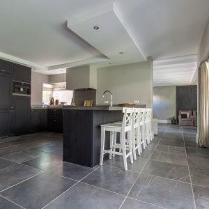 De rustiek verouderde tegels zijn niet alleen mooi, er zit nog een ander groot voordeel aan deze afwerking. Het geschuurde oppervlak heeft namelijk dezelfde kleur als de kern van de tegels. Hierdoor zijn kleine krasjes en gebruikerssporen haast niet zichtbaar. Ideaal dus.
