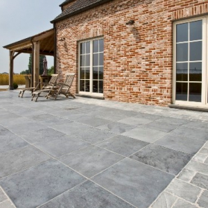 Met de industrieel ogende schuurslagen die nog in het oppervlak zichtbaar zijn is de Vietnamees Hardsteen Zandgeschuurd en Handgetrommeld een tegel die zowel in een moderne als in een landelijk ogende tuin verwerkt kunnen worden.