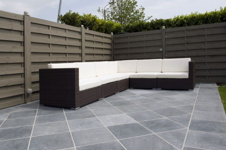Deze Vietnamese Hardsteen is 3 cm dik en dus 100% vorstbestendig. Deze tegel kan dan ook gemakkelijk verwerkt worden in het gestabiliseerde zand.