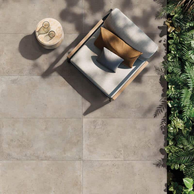 De okerbruin gemêleerde kleur met echte kleurschakeringen in de tegel zorgen voor een natuurlijke uitstraling welke tot zijn recht komt in ieder landelijk terras. Door middel van de nieuwste 3D-technologiën waar ze in onze fabrieken in Italië gebruik van maken, kan er een zeer realistische diepte gecreëerd worden. Naast de oppervlakte afwerking in combinatie met de uitstraling, zijn er ook verouderingen in de zijdes verwerkt welke naast zichtbaar ook voelbaar zijn. Als finishing touch is het materiaal verkrijgbaar in 3 verschillende formaten, namelijk 60x60cm, 80x80cm en 120×60 cm. Naast het kiezen van het verwerken van standaardformaten kan er een banenverband gecreëerd worden met het 120x60cm formaat. Door de afmetingen van de tegels is er ook een Groot Wildverband ontwikkeld, de 3 verschillende formaten worden dan in een vast terugkerend patroon toegepast. Aangezien er vaak de wens is om patronen en tegels naar binnen door te leggen, hebben we de Vieux Ocre ook in een 1 cm dikke variant laten fabriceren. Zo krijg je binnen diezelfde landelijke uitstraling als je nieuwe buitenterras.