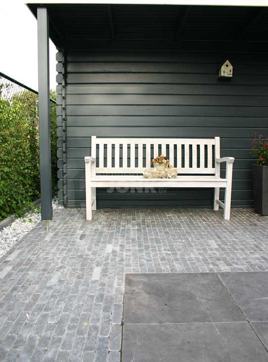 De Spotted Bluestone “Soft Finish” in Waalformaat kan uiteraard ook gecombineerd worden met de grotere formaten Spotted Bluestone tegels uit ons assortiment. De steentjes kunnen dan dienen als lijst of kader.
