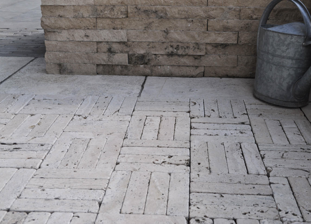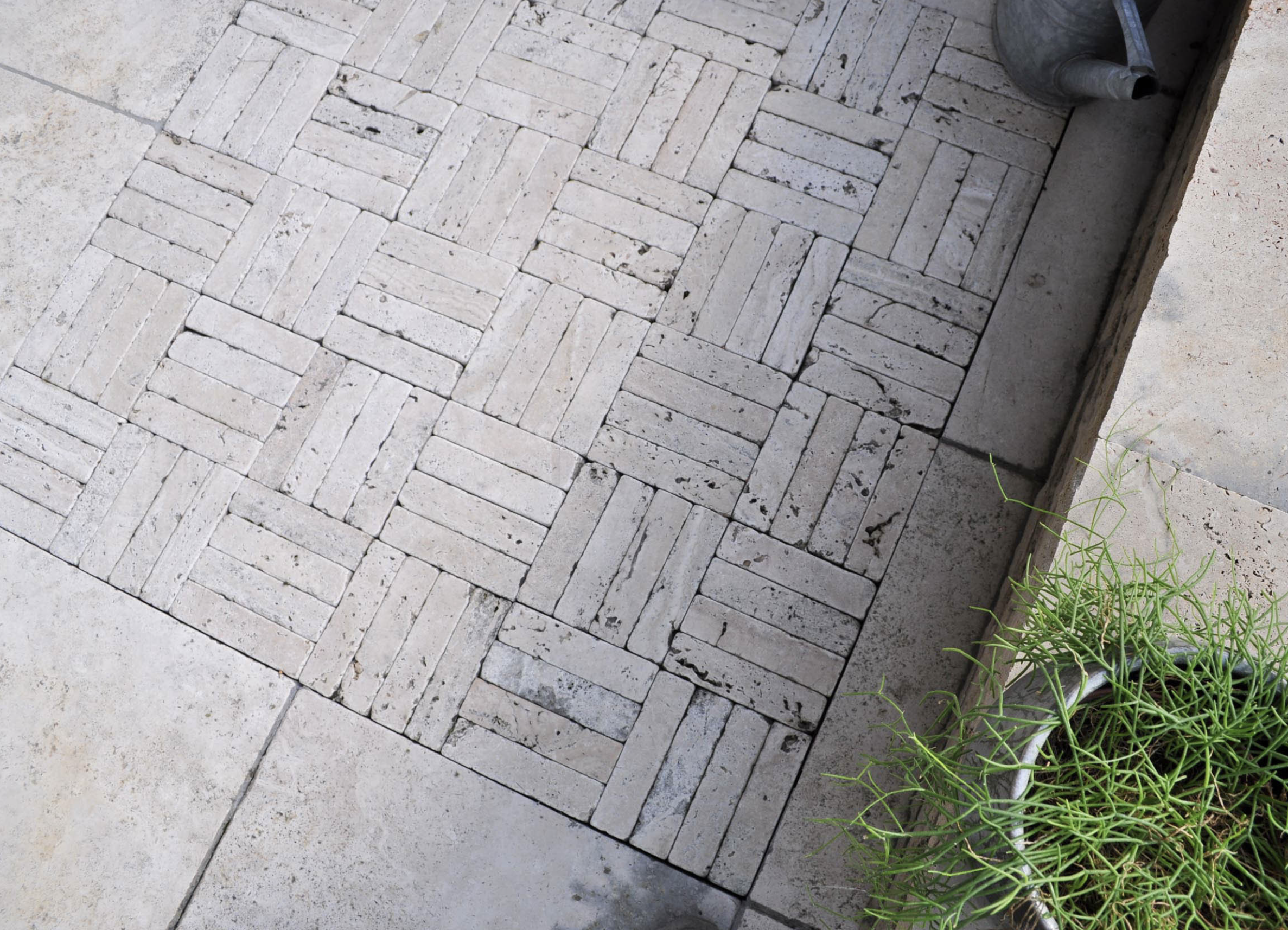 De Travertin Ivory Creme in Waalformaat kan uiteraard ook gebruikt worden in combinatie met andere terrastegels. De steentjes kunnen dan dienen als lijst of kader om tegels met bijvoorbeeld grotere formaten. Of bijvoorbeeld als afscheiding tussen een terras en het gras.