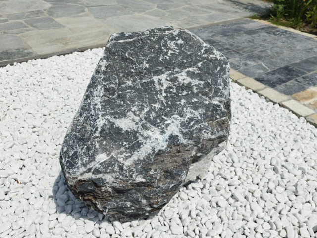 Creëer een opvallend statement in uw buitenruimte met de prachtige Zwerfkei Torros. Deze robuuste zwerfkei is doordrenkt met karakter en ademt een tijdloze schoonheid uit. Met een grijze antraciete tint en opvallende witte aders, wordt uw tuin verrijkt met een onmiskenbare eye-catcher die de aandacht trekt.